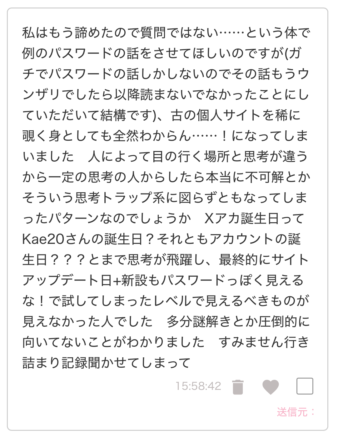 というかああいうパスワードってもしかして全然簡単じゃない⁉️個サイだとよくあるタイプのやつというか、本当に簡単だと思いこんでいた……